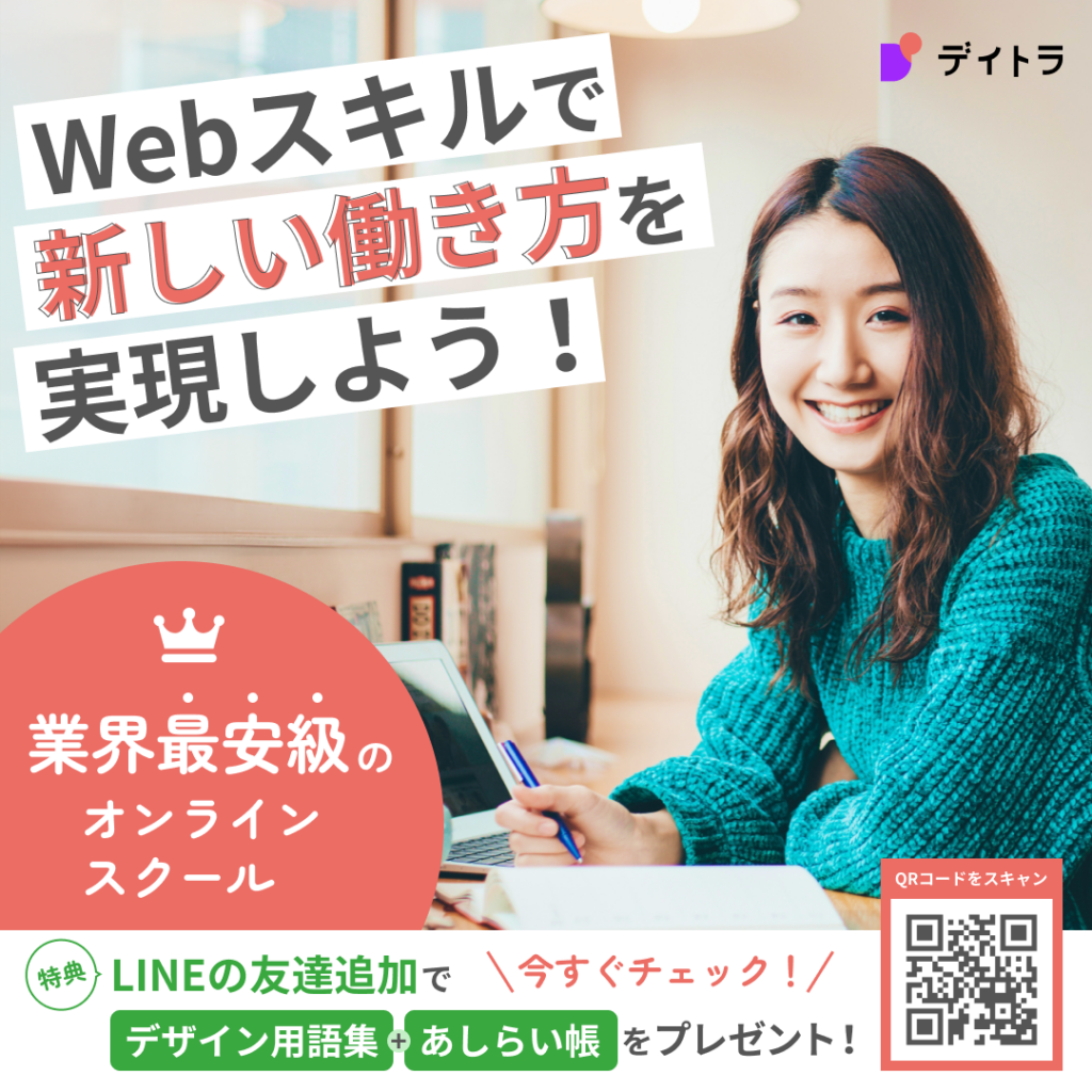 オンラインスクールの架空の広告バナー。アクセントカラーはロゴのオレンジを使用。目的がLINE登録のため、その部分にはLINEのカラーである緑で目立たせました。